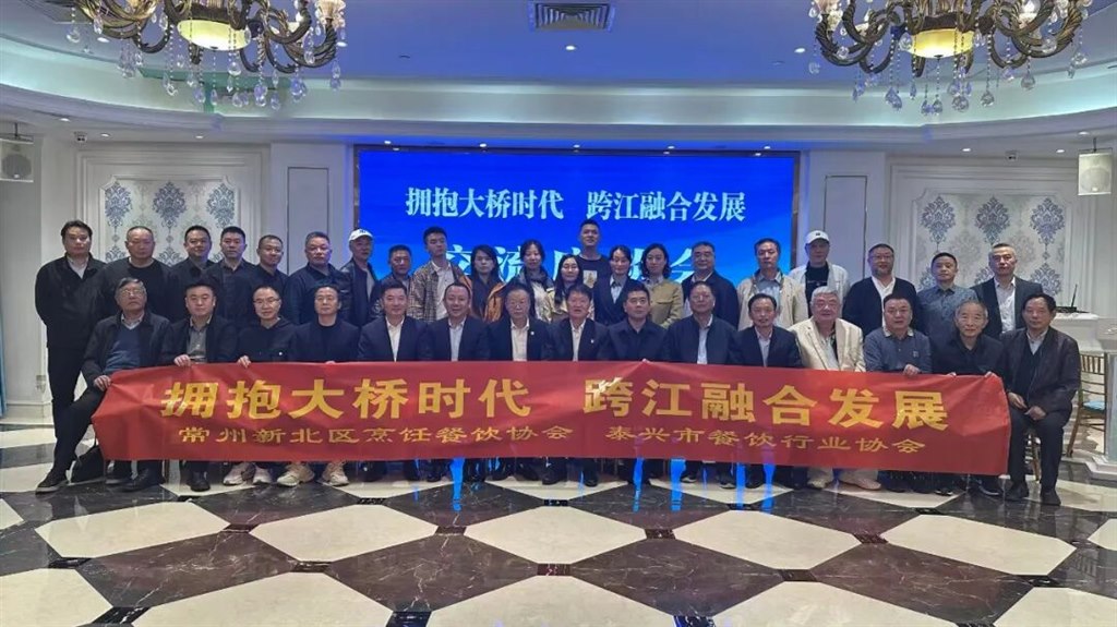 当天下午,新北区烹饪餐饮行业协会与泰兴市餐饮行业协会在喜米格喜宴公馆举行了"舌尖上的跨江融合"交流座谈会